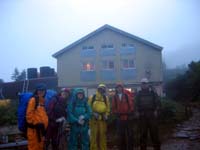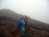 | 朝3時半に起きるが、今日も雨。小屋で朝食をすませ、5時20分出発。 | ||