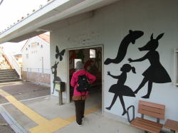 | 「もう少し先のおばあちゃんを乗せてくるので、休んでいてください。」と言われた。バスは三人だけで発車した。おばあちゃんは日帰り温泉に送ってもらうそうだ。若いときは大辺路富田坂から仏坂を歩いたそうで、ずっとその話をしてくれた。楽しい話を聞きながら、バスはすぐに紀伊日置(きいひき)駅に到着。 |
