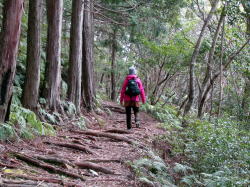 | 峠まではなだらかなアップダウンが続く。木の根道も多い。 |