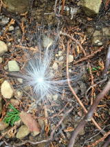 | 白いふわふわした綿毛があちらこちらに落ちていた。たぶんキジョランだと思われる。(高尾山で初見) |