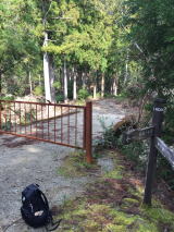 林道になったが、道は急な下りだ。途中小さな標識に従い、山道に入ったがまた林道に戻る。あまり歩かれた様子がなかった。 |