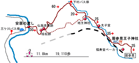 | ゴールの 周参見王子神社の近くに歴史民俗資料館があり、そこにトイレもあるというので安心していたら、現在休館中と張り紙。でも、外から入れるトイレは使用可だったので一安心。 |