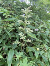 | 私達が入った千本屋の隣にある駒鳥売店からキレンゲショウマが見られるそうなので、見せてもらうことにした。気持ちよく案内してくれたので、帰りに漬物を買った。残念ながらまだ蕾だったが沢山ある。 |