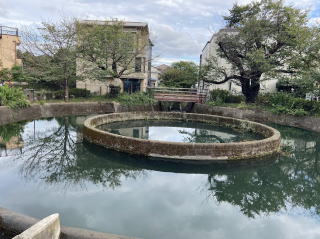 円筒分水は平瀬川の水を地下から放射状にあふれさせ、一定の比率で分水させる装置で、昭和16年当時は画期的だったそうだ。4つの堀に水が分かれるようになっていた。 | |