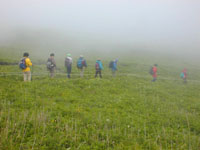 | 草原、岩場、湿地帯と変化に富んだコースで、そのため花の種類も多く”花の浮島”を実感できた。皆昨日と違い、もうチシマフウロなど咲いていても驚かなくなった。 |