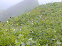 レブンシオガマ、ミヤマオダマキ、ハクサンチドリ、レブンソウ、レブンシオガマ、レブンハナシノブ、レブンキンバイ、クロユリ、センダイハギ・・・・・花の種類は数え切れないほどだった。 |