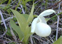 遊歩道を歩いていると、ロープが這ってあるすぐ近くになんとレブンアツモリソウが咲いているのを見つけた。 |