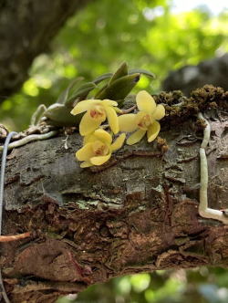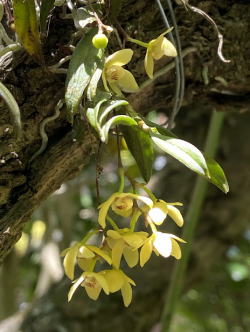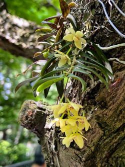 カヤランは思ったより小さい花だった。教えてもらわなかったら見過ごしそうだ。以前裏高尾で見た時より、小さい気がした。でもこんなに近くで見られてうれしい。 | ![]() |