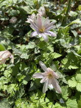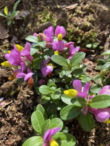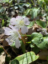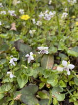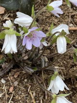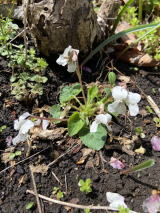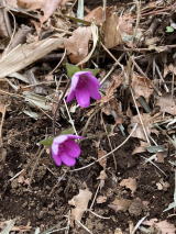 | ミスミソウ、アオイスミレが少し出てきた。天気が悪いので花はあまり開いていない。まだセツブンソウがよく咲いていた。 |