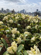 国立競技場の5階に一周850mの遊歩道がある。友人と信濃町から歩いてみた。きれいに植栽され、360度見渡せる。今日は暖かく気持ちがいい。 |