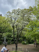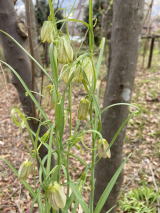 | 彫刻広場でラクショウやヒトツバタゴの木の説明があり、片倉沢へ。カイコバイモが一輪見られたが、遠すぎて写真はうまく撮れなかった。 |