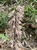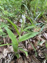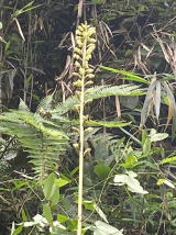 | そこへ通りかかった方が、親切にいろいろ教えてくれた。ヒメザゼンソウはこれから1ヶ月くらいは見られるとのこと。それと以前探して見つからなかったオニノヤガラの場所まで教えてくれた。全く探していないエリアだった。数日前に出ていたアオテンマは |